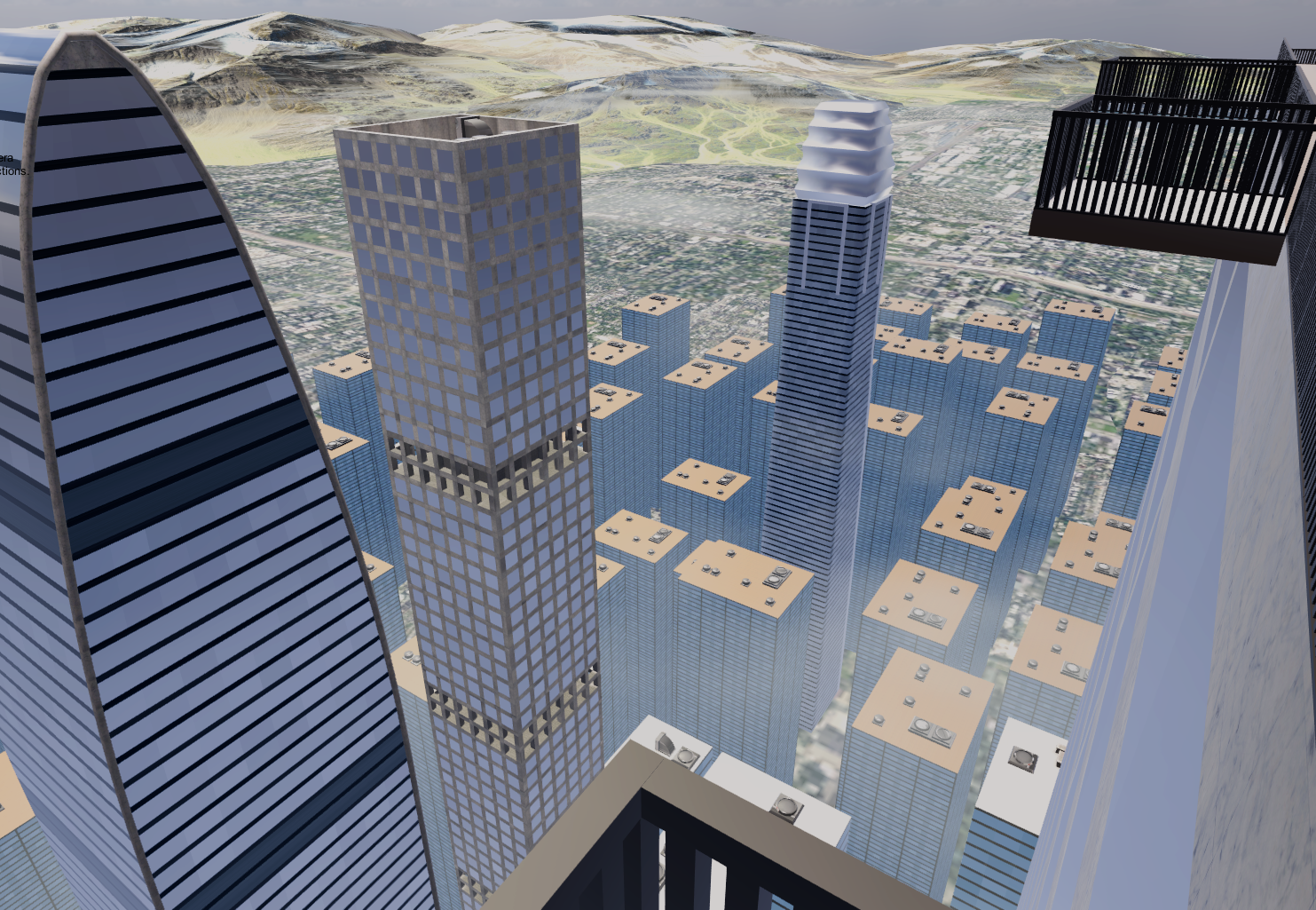 Hlavním prvkem expozičního scénáře navrženého pro osoby s akrofobií (strach z výšky) je střecha výškové budovy a prosklený výtah na boku budovy. Budova má celkem 84 pater, v každém z těchto pater je možné vystoupit z výtahu do prosklené chodby a vejít na malý balkon umístěný na konci chodby. V průběhu sezení se pracuje s dalšími nastavitelnými parametry, např. s výškou zábradlí.